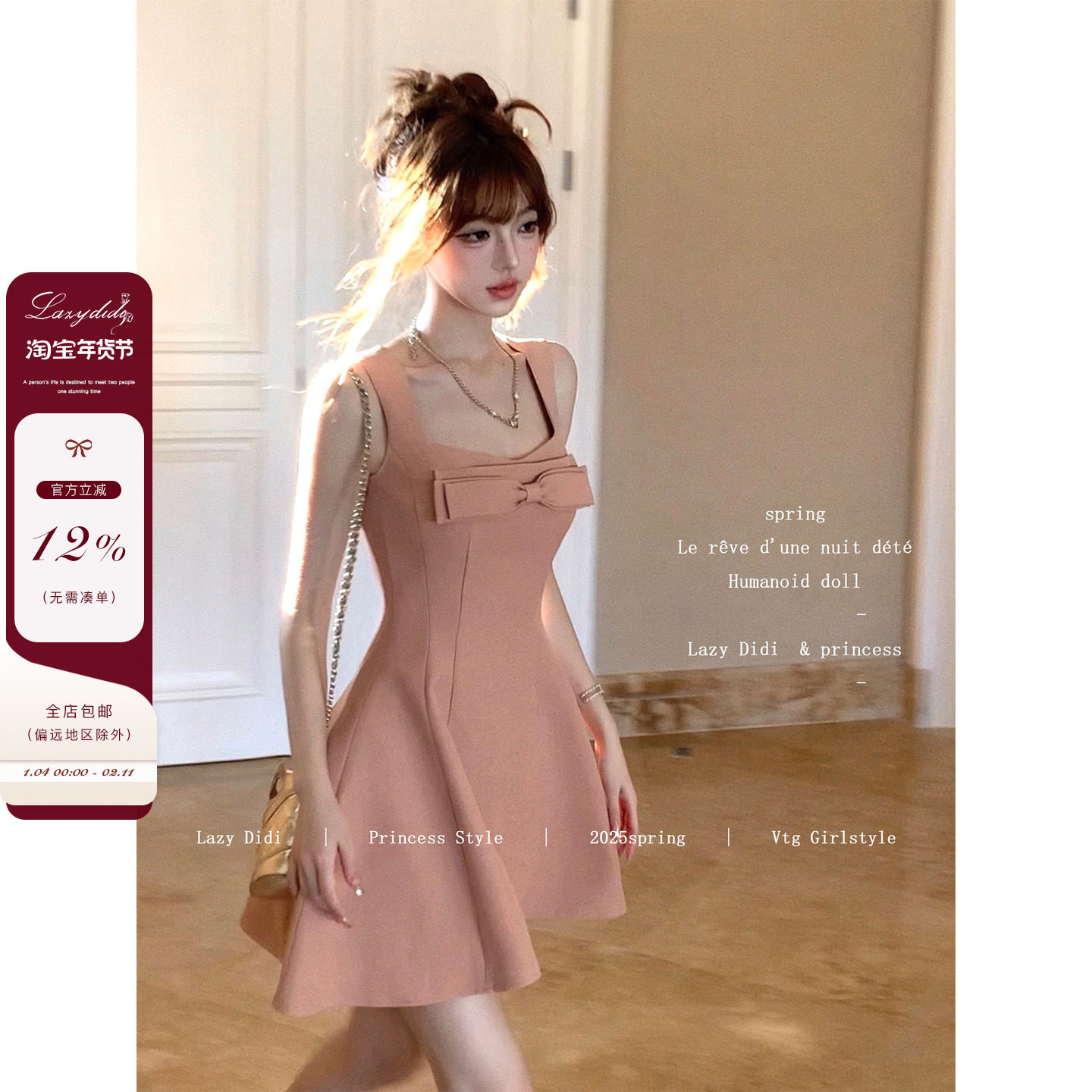 Lazy Didi翩若天鹅 玫瑰人生2.0 A版大裙摆蝴蝶结千金公主连衣裙