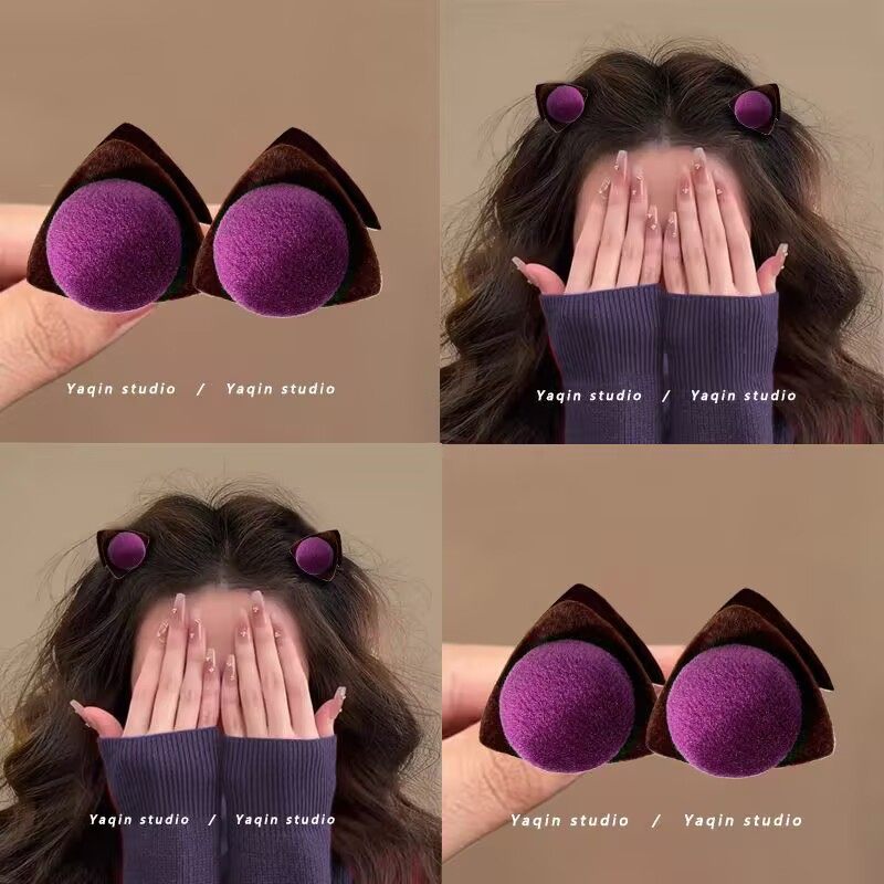 2025年新款潮紫色植绒猫耳朵小号抓夹甜美前额刘海夹公主头发夹