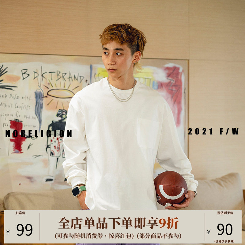 NOFAITH重磅300g打底衫纯白色藏青圆领休闲长袖T恤宽松男女无信仰