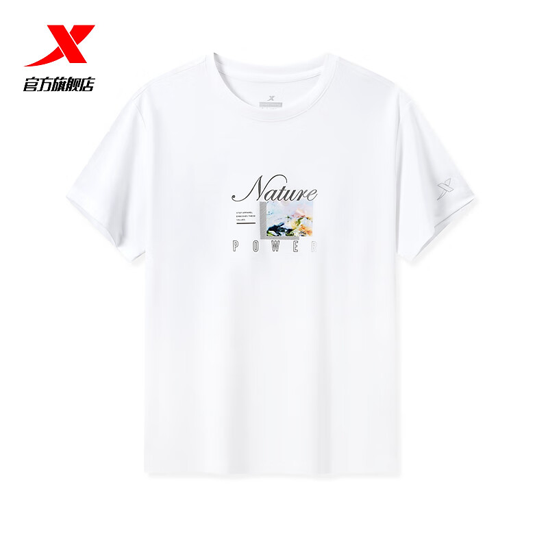 特步短袖女2025夏季官方运动休闲白色圆领女子针织衫976228010453