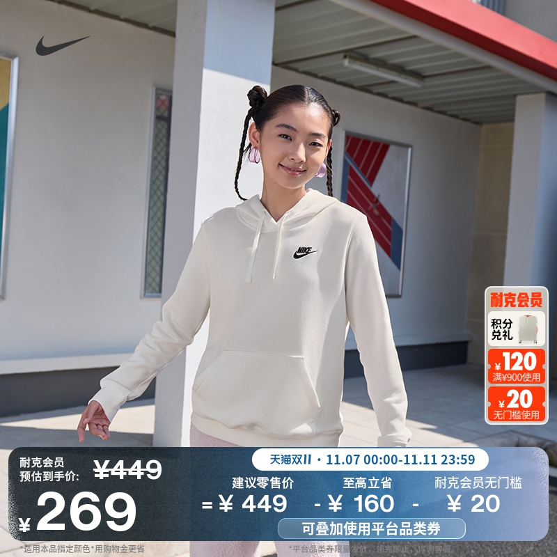 耐克女子薄绒套头连帽衫冬季针织休闲运动拼接卫衣NIKE DQ5794