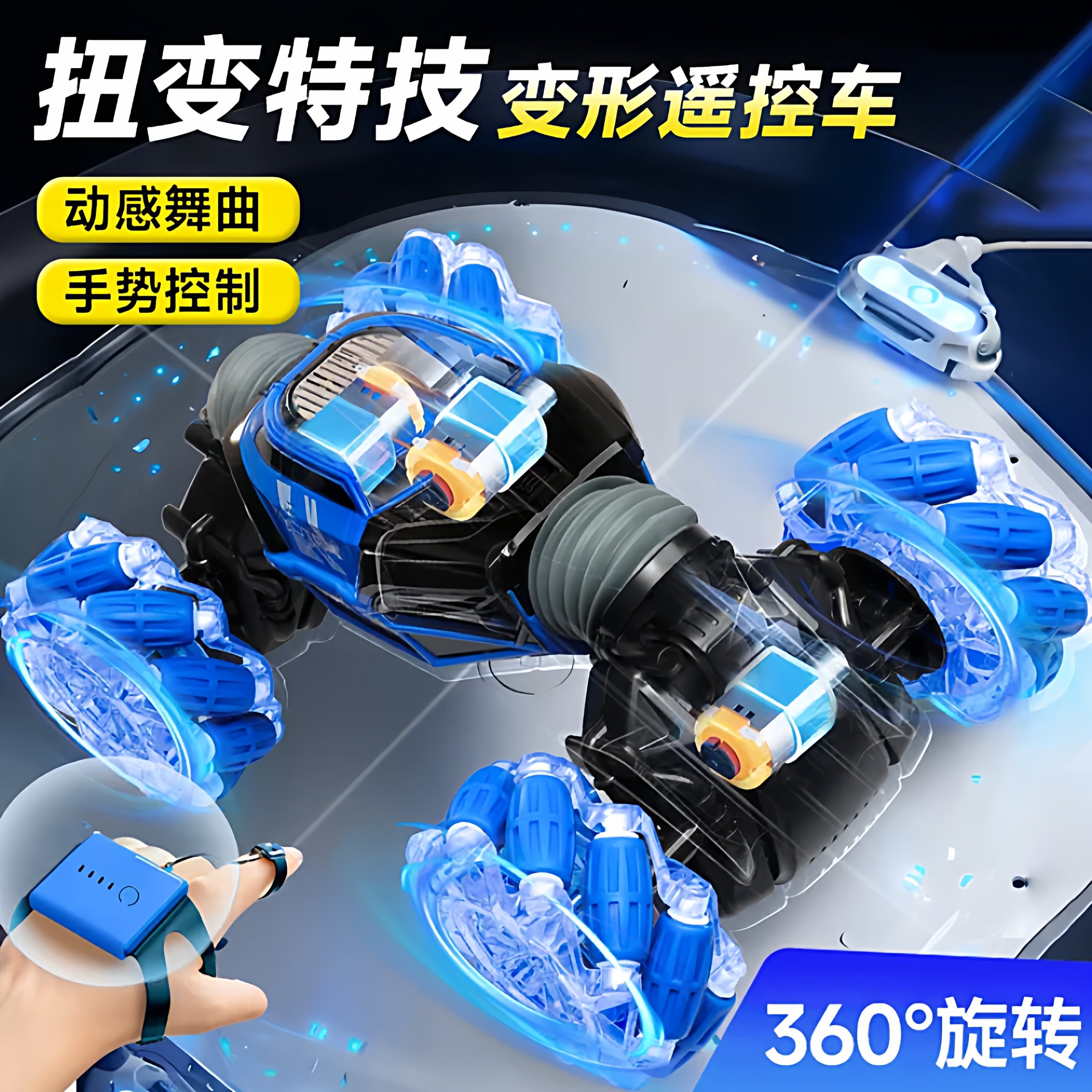 手表手势感应变形遥控汽车男孩手指特技扭变越野四驱赛车儿童玩具