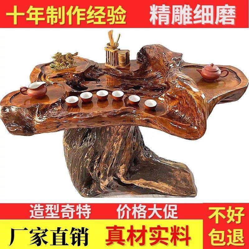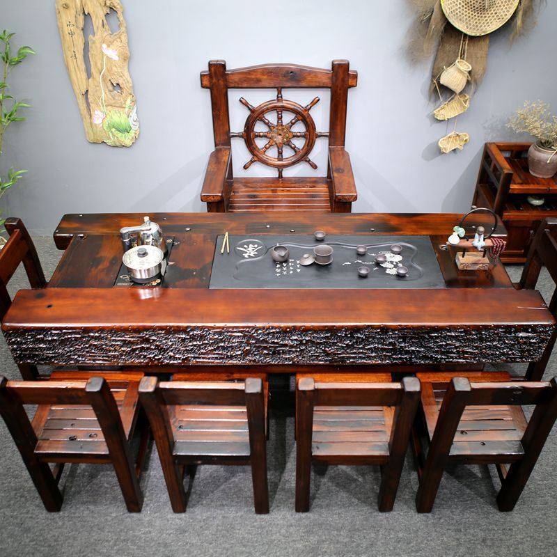 • 老船木茶桌中式茶几实木仿古客厅功夫茶台大龙骨茶室喝茶桌椅