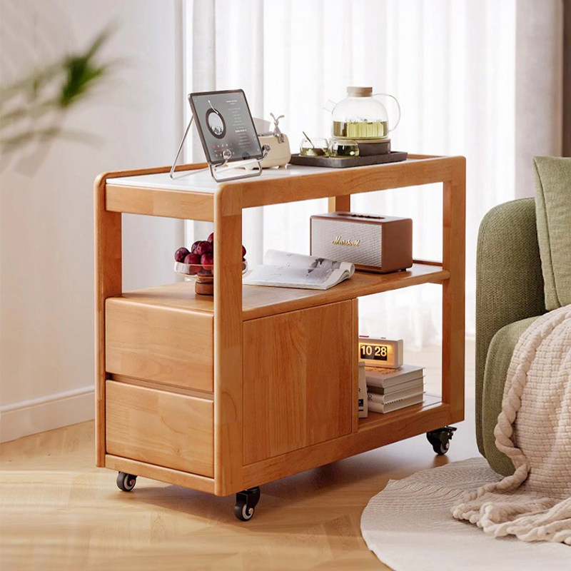 • 移动边几客厅移动小推车小户型带轮家用置物架茶几实木收纳储物架