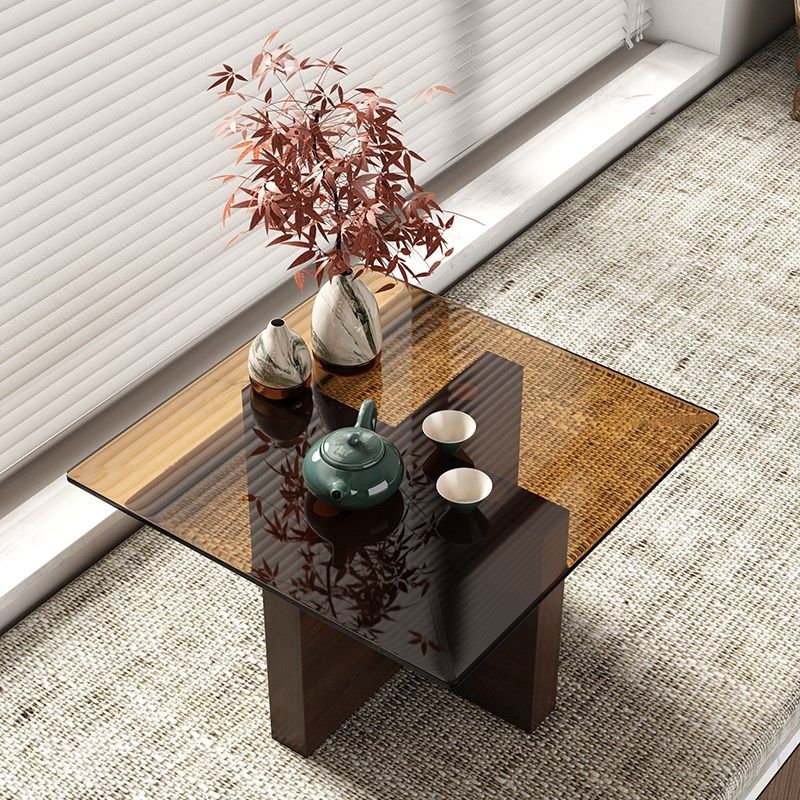 • 飘窗桌家用榻榻米玻璃矮桌现代简约阳台飘窗小茶几实木网红小炕几