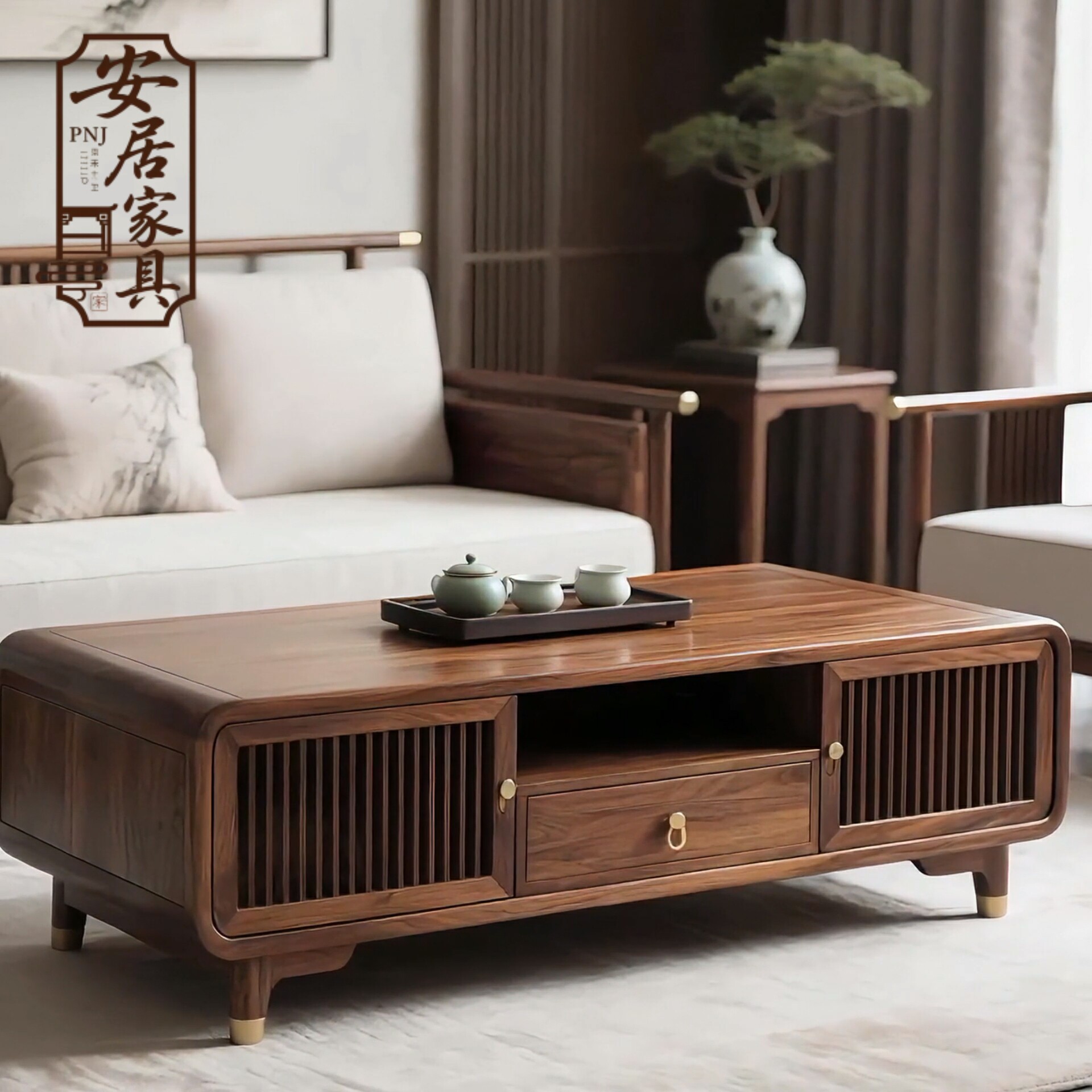 • 中式茶桌榻榻米茶几实木禅意小桌子北美黑胡桃木矮桌家用炕桌飘窗