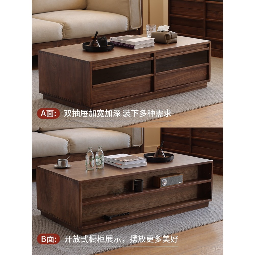 • 意式极简黑胡桃木茶几实木钢化玻璃茶几桌客厅家用原木轻奢大户型