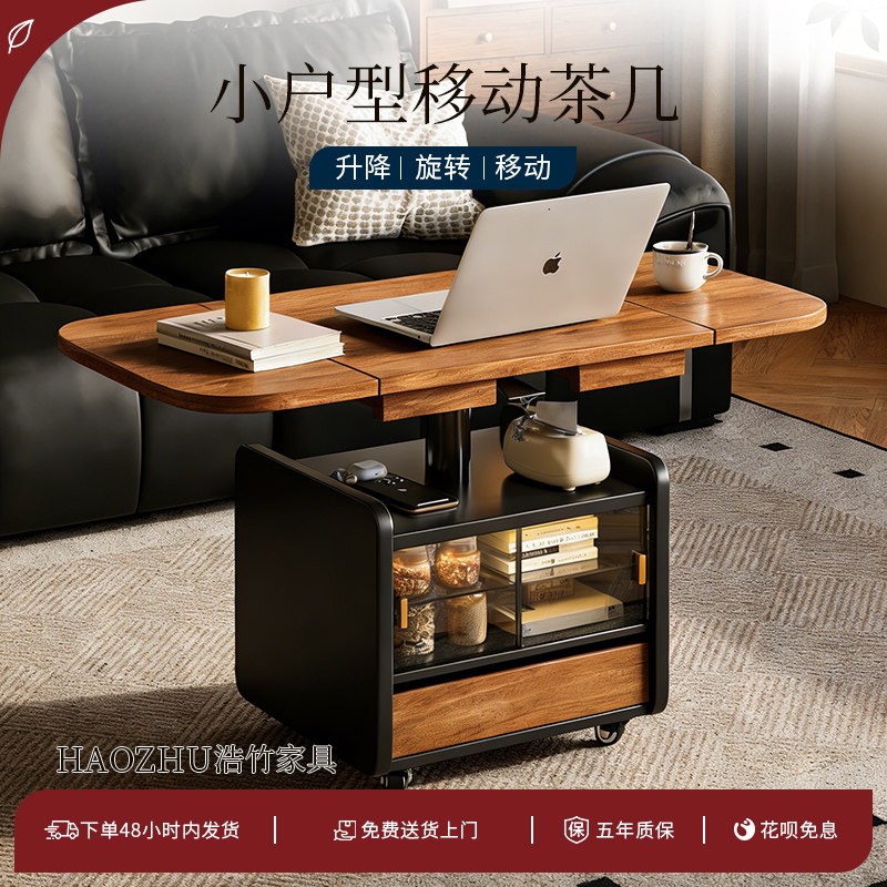 • 克里斯可升降茶几实木小户型现代简约多功能大容量储物移动茶台