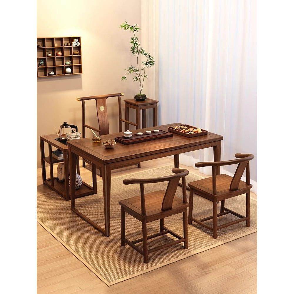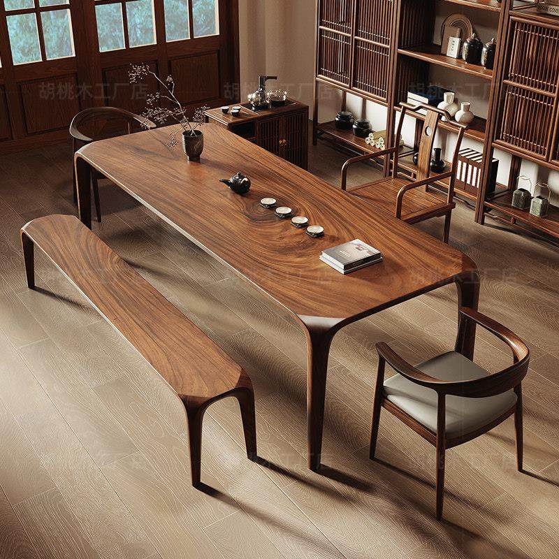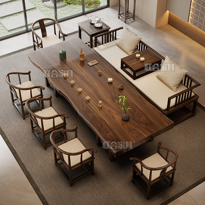 • 南美胡桃木卯榫茶桌椅组合客厅家用阳台茶几实木泡茶办公大板茶台