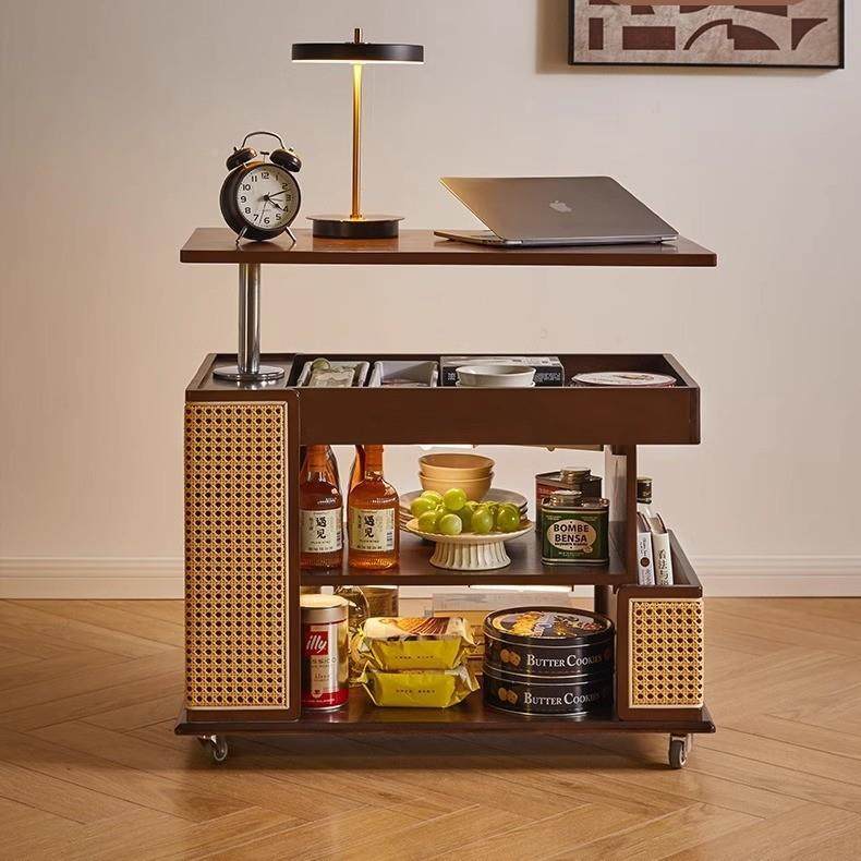 • 升降折叠茶几实木可移动中古风小推车餐桌边几沙发边柜小茶桌芊洛