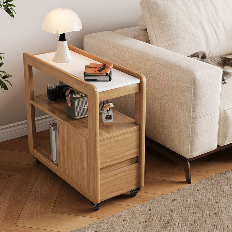 • 可移动茶几实木沙发边柜岩板侧边几带轮茶台小户型客厅2025新款