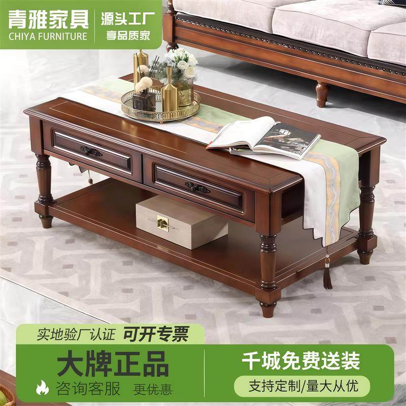 • 美式小户型茶几实木简约客厅沙发边几家用方茶桌茶几桌小茶台方形