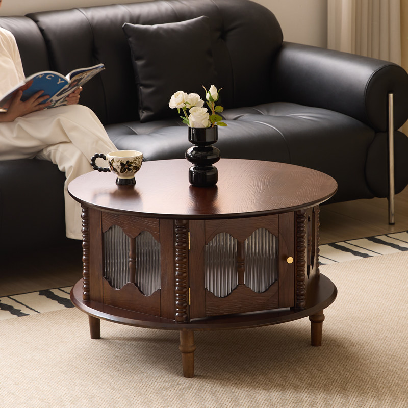 法式复古风白蜡木实木茶几电视柜组合客厅小户型圆形中古风小茶桌