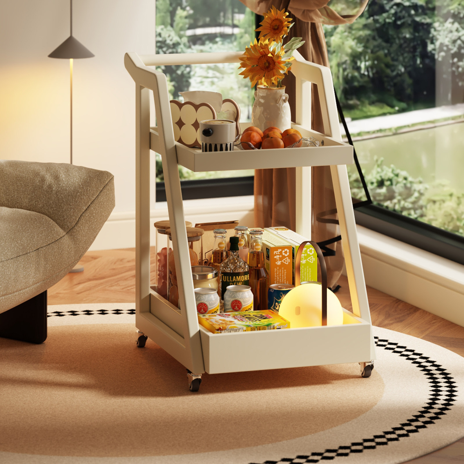 • 桌下移动边几客厅茶几实木多层小推车家用侧边置物架办公收纳架