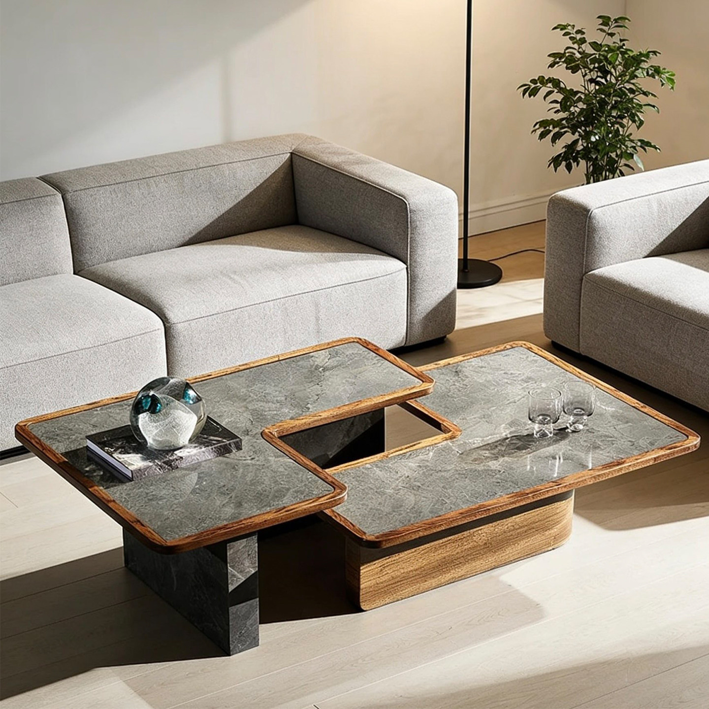 • 意式轻奢岩板茶几实木异形组合设计师款创意高级感客厅现代咖啡桌