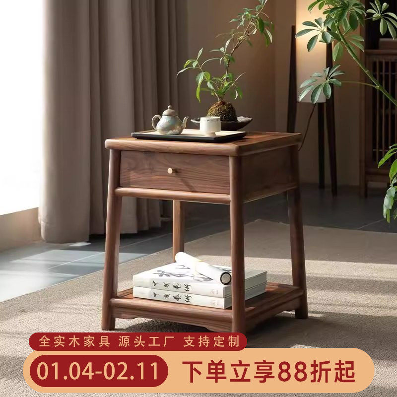 • 画墨新中式黑胡桃客厅沙发边几带抽屉角几家用小茶几实木床头柜