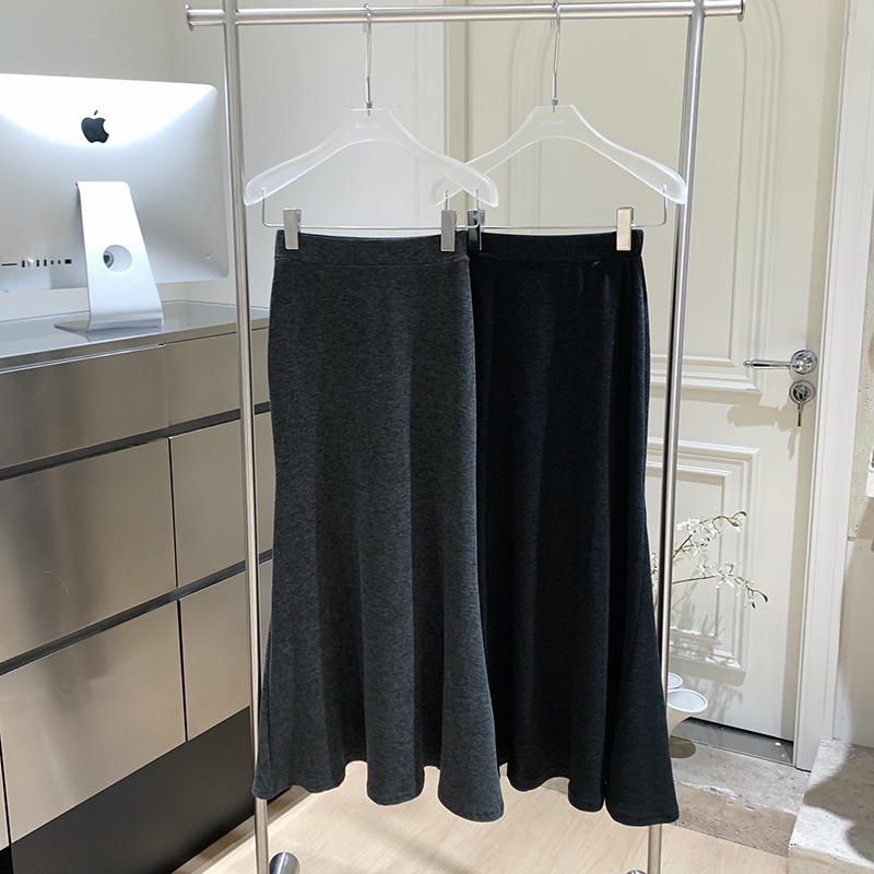 灰色软糯米针织绝美巨好看的半身裙大码女秋冬长裙梨型伯克利裙子