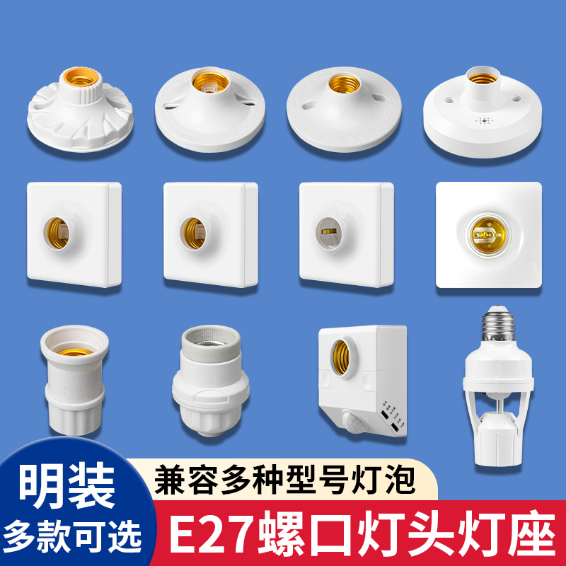 家用灯头灯座E27螺口通用型明装可控LED节能灯泡明线球泡灯座插座