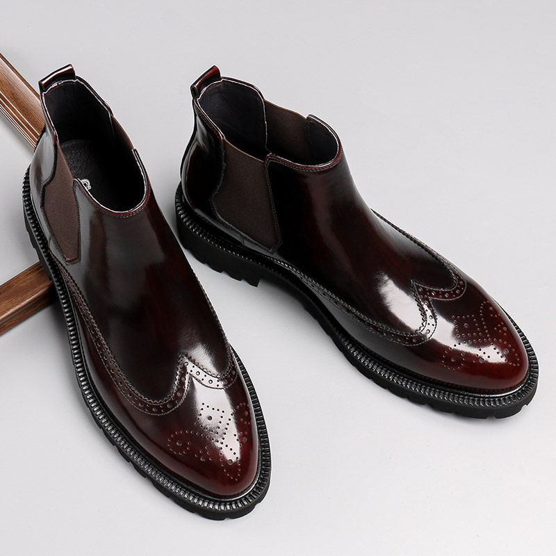 复古切尔西靴男英伦高帮尖头皮鞋高级感马丁靴雕花布洛克商务男靴