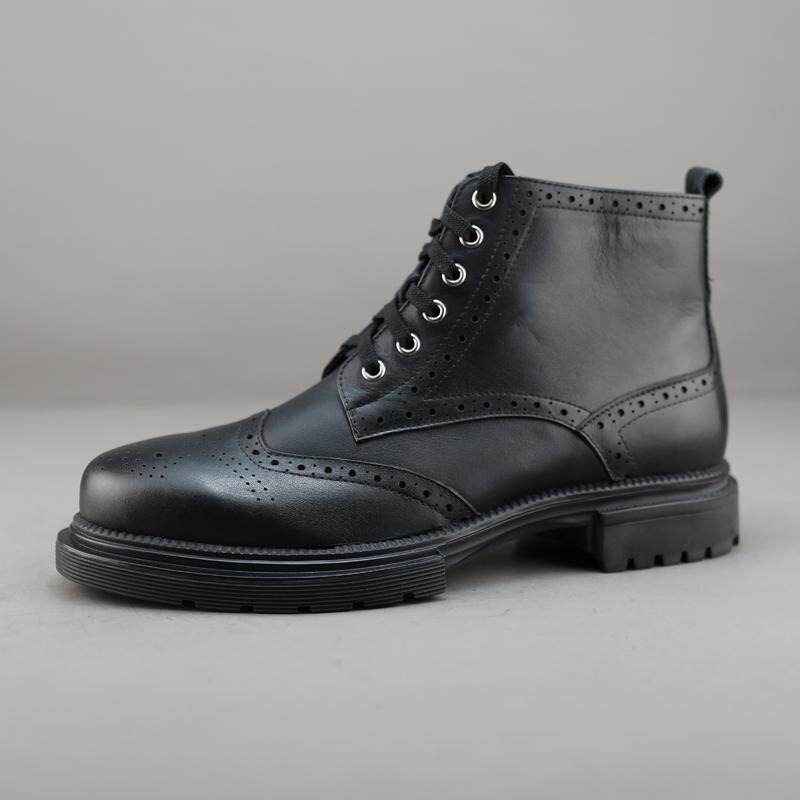 真皮厚底增高布洛克高帮皮靴男冬季加绒保暖男靴英伦风男士马丁靴
