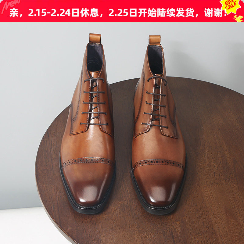 TRD复古切尔西靴男英伦高帮真皮ins潮马丁靴男雕花布洛克商务男靴