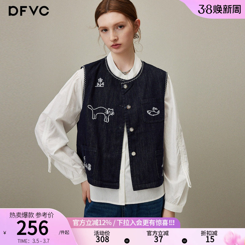 dfvc文艺风刺绣牛仔马甲女2026年春季新款宽松小个子短款背心外套