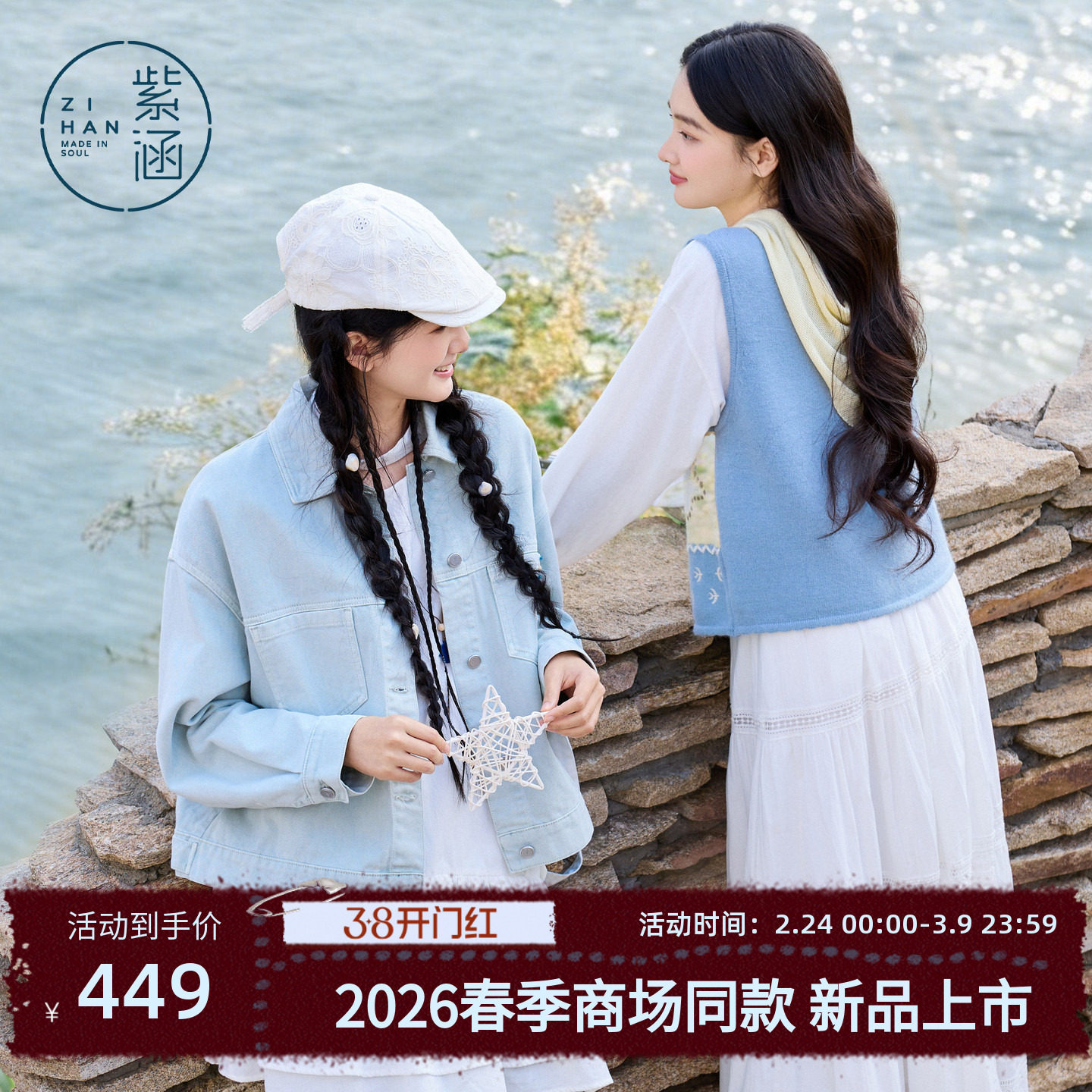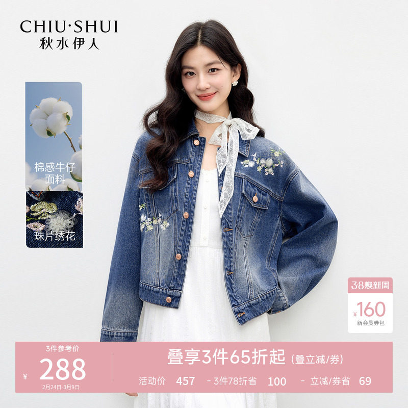 秋水伊人复古绣花牛仔外套女2026春季新款宽松设计感蓝色短款外套