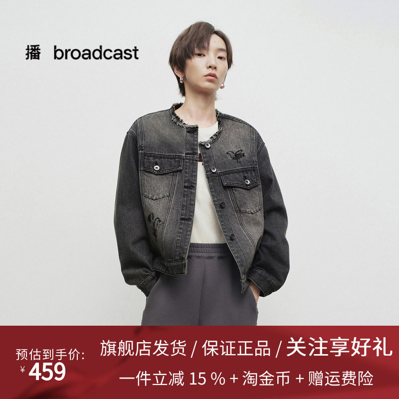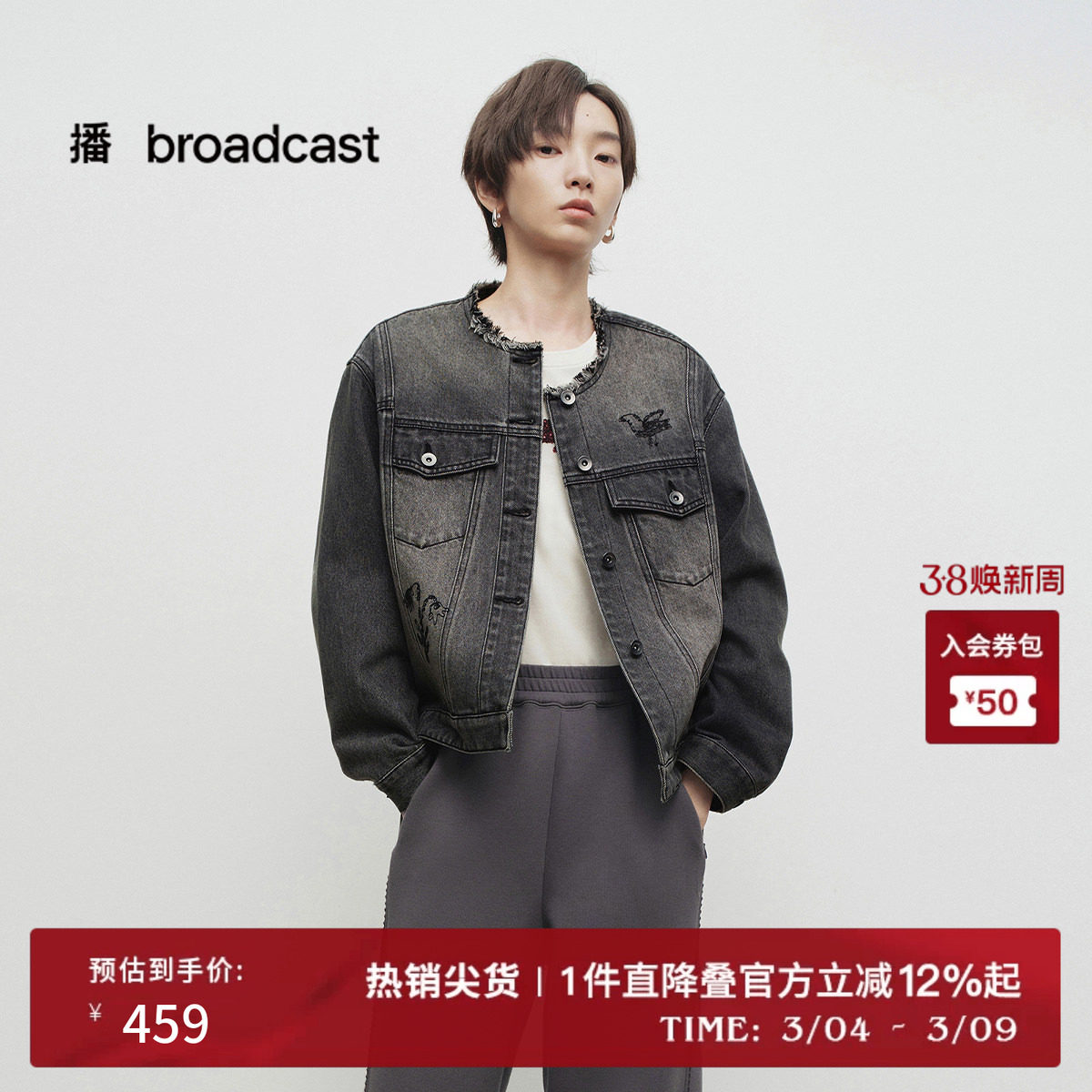 播broadcast黑灰色复古牛仔短外套女25春季刺绣上衣BDS1WD1554