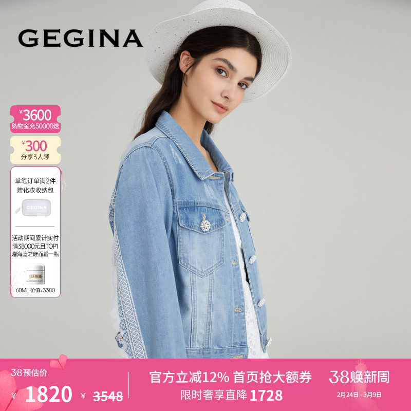 【刺绣】GEGINA吉吉娜女装春夏夏款时髦牛仔外套女短款直筒短外套