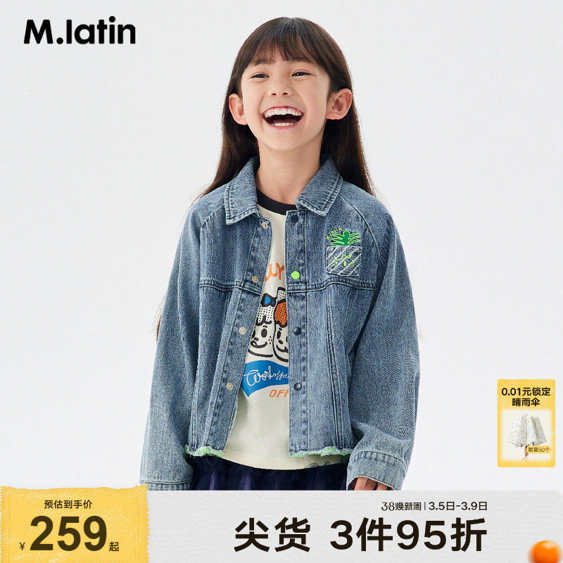 安奈儿童装女童牛仔外套2026春蝴蝶绣花挺阔宽松软牛仔短版简约风