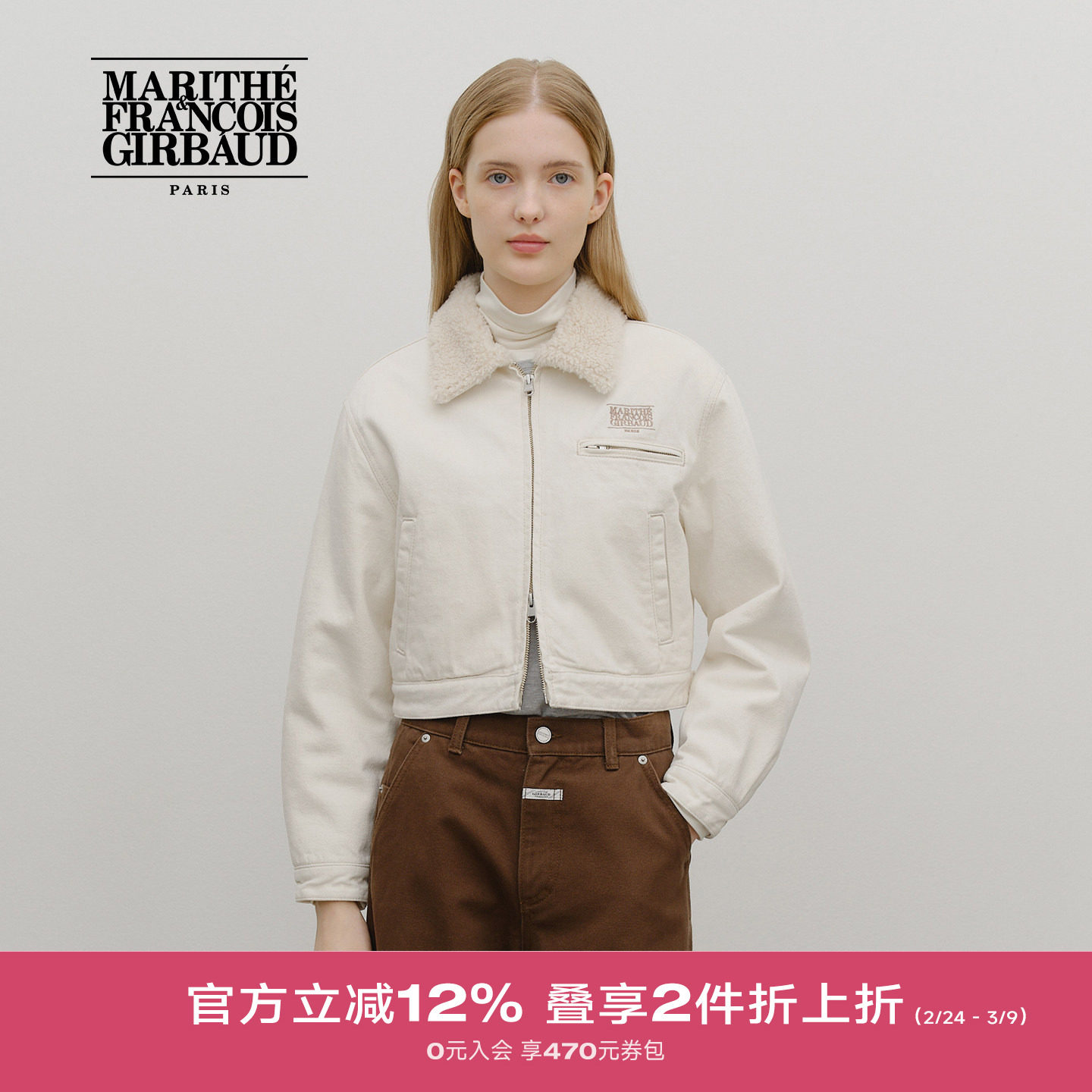 MARITHE女士毛绒牛仔短夹克 潮流简约经典LOGO刺绣翻领外套25秋冬