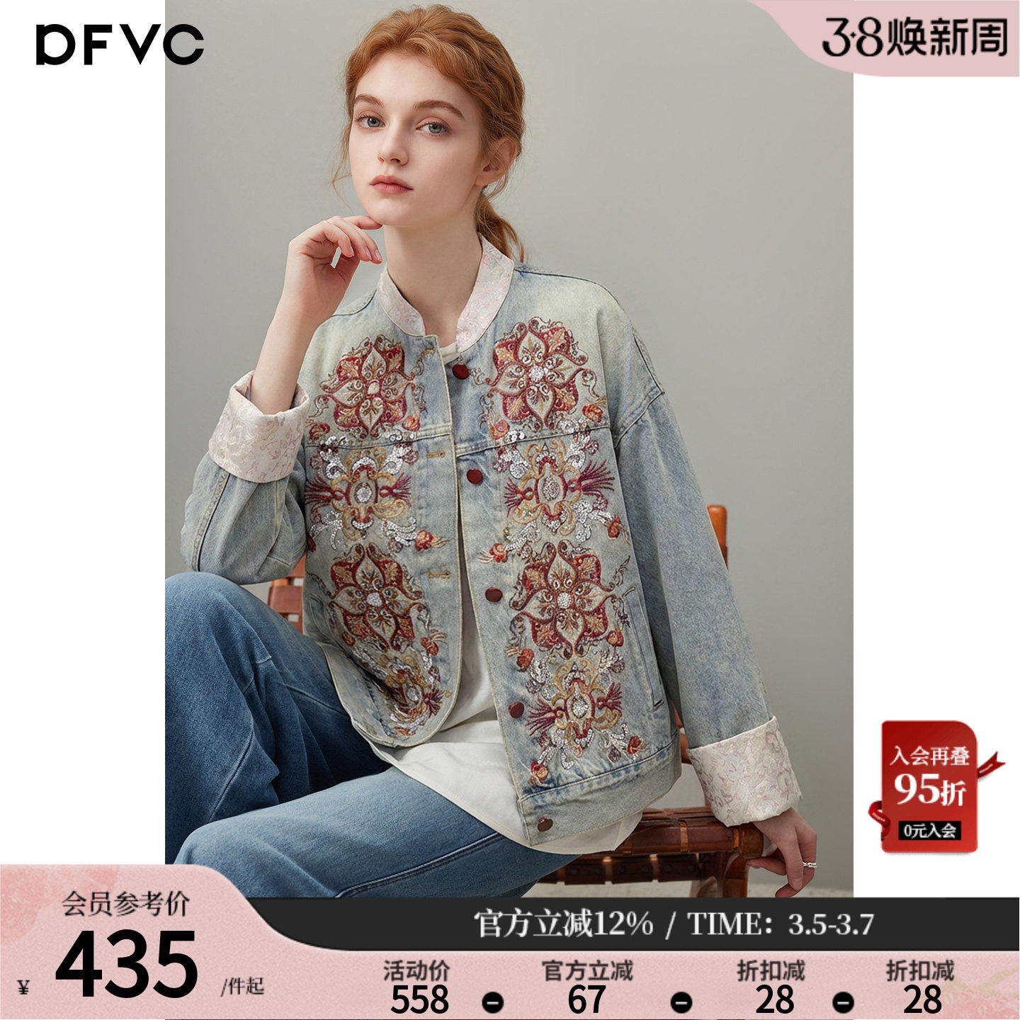 dfvc新中式国风短款牛仔外套女2026年春季新款复古绣花宽松夹克