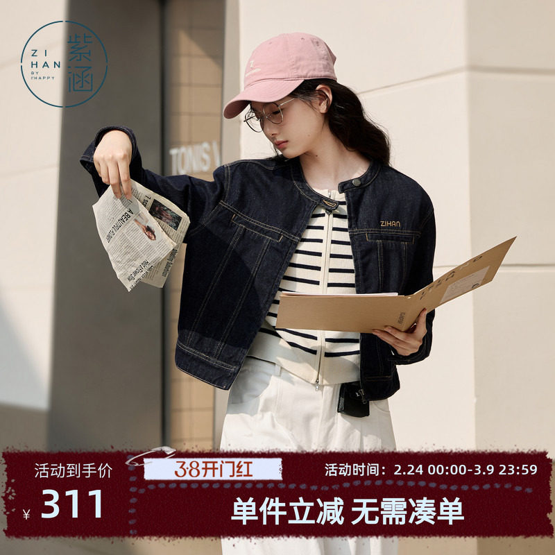 紫涵短款立领拉链牛仔外套女春秋季新款时尚百搭休闲宽松刺绣上衣
