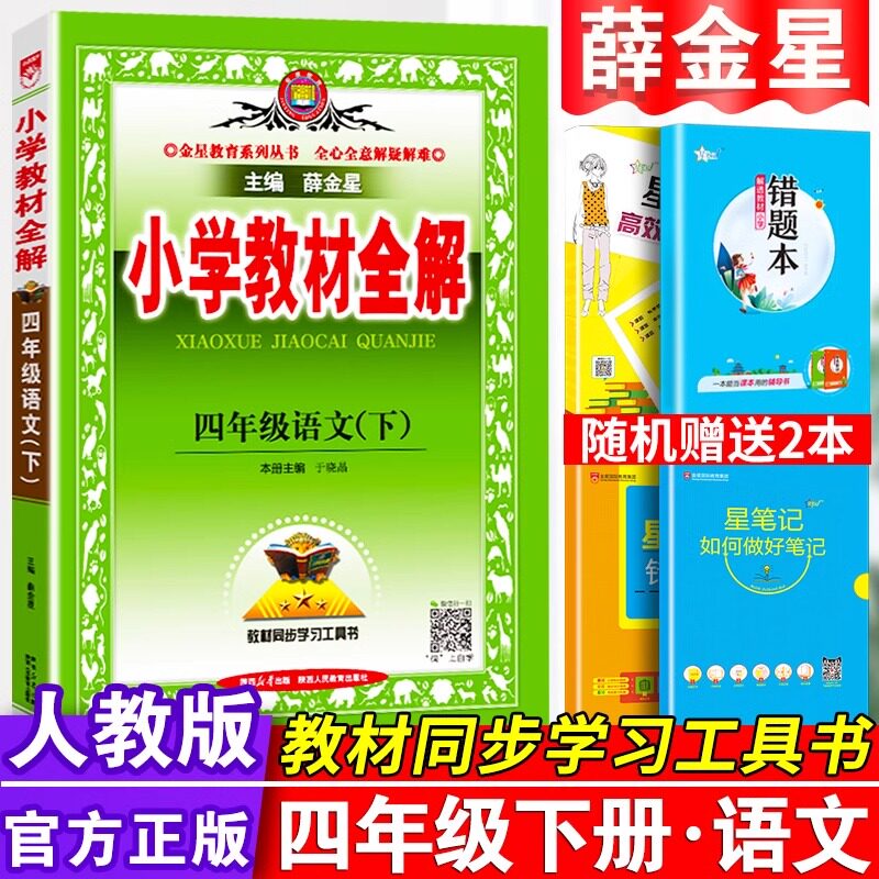 小学教材全解四年级下册语文数学英语人教版全套小学4年级同步专项训练上册课本解读练习册随堂黄冈学霸课堂笔记薛金星辅导资料书