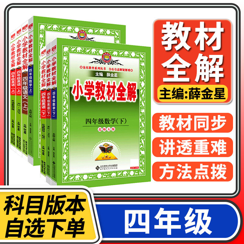 小学教材全解四年级上册下册语文数学英语人教北师大外研 薛金星4年级课本同步训练讲解练习册资料教材帮手完全解读教辅书