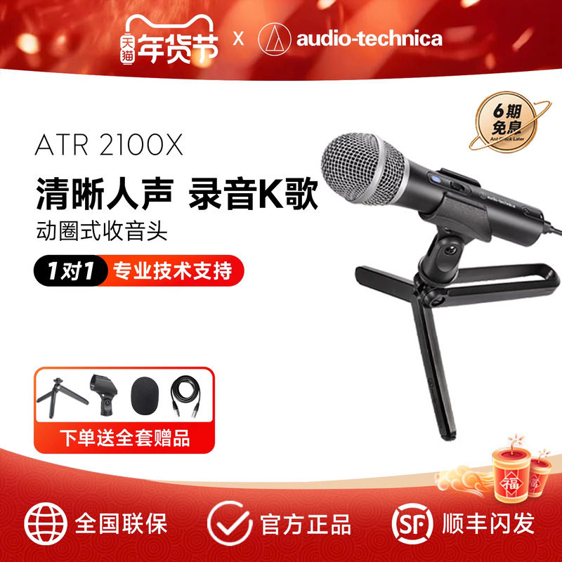 铁三角麦克风ATR2100x主播K歌直播 录音设备 台式电脑USB动圈话筒