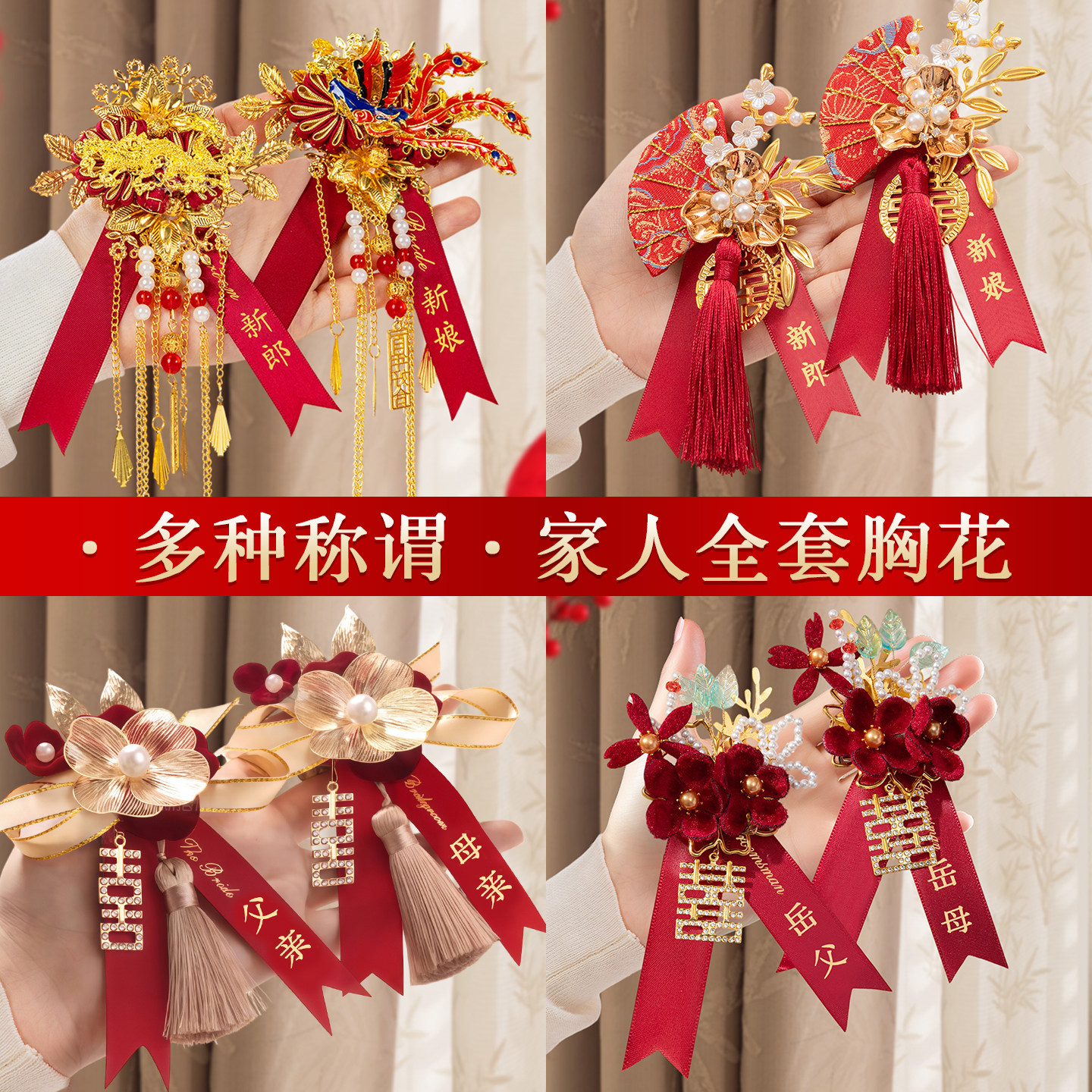 伴娘伴郎胸花别针新郎新娘婚礼中式全套家人高档襟花父亲母亲贵宾