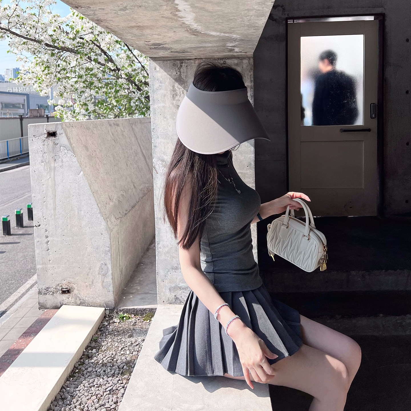 【美少女jk】胸腰腿绝了 半高领针织上衣 迷你百褶短裙韩系学院风