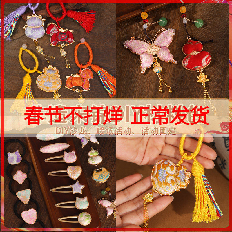 非遗手工宋锦diy材料包发夹蝴蝶葫芦发饰头绳胸针底托新年礼物
