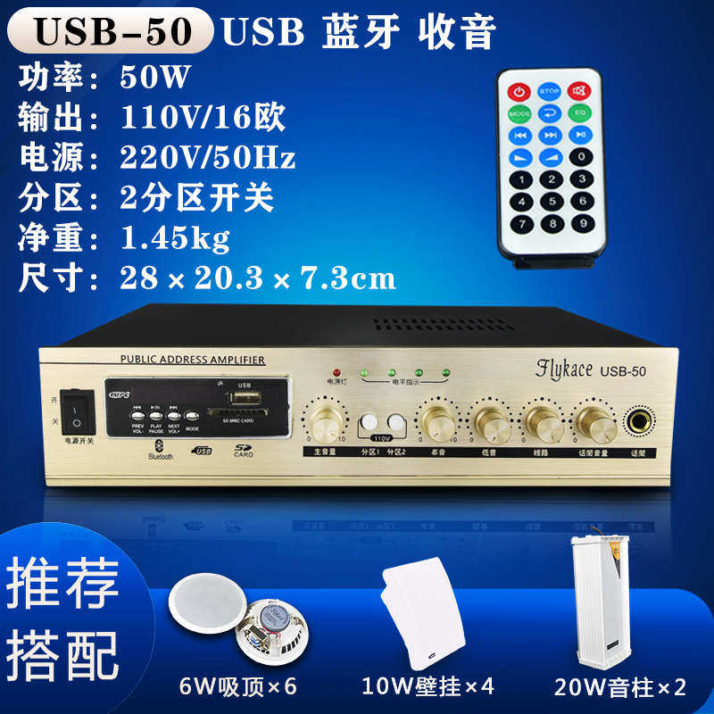 50W家用定阻定压功放机MP3店铺背景音乐功放吸顶音响喇叭功放 USB