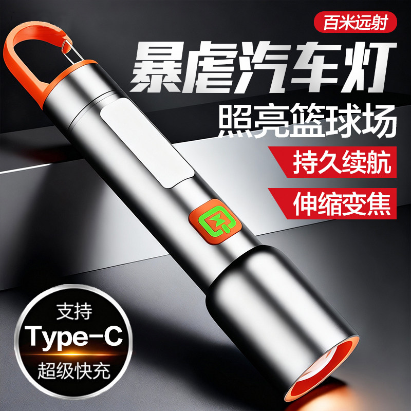 迷你手电筒2025新款强光户外超亮充电变焦远射家用耐用小型便携式