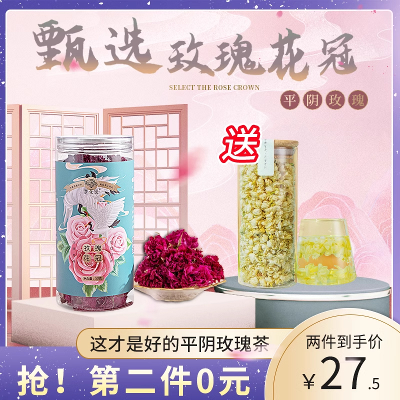 玫瑰花茶平阴玫瑰花冠正品官方旗舰店重瓣玫瑰花搭菊花胎菊泡水喝