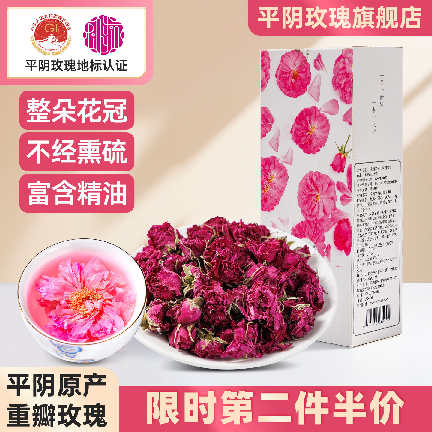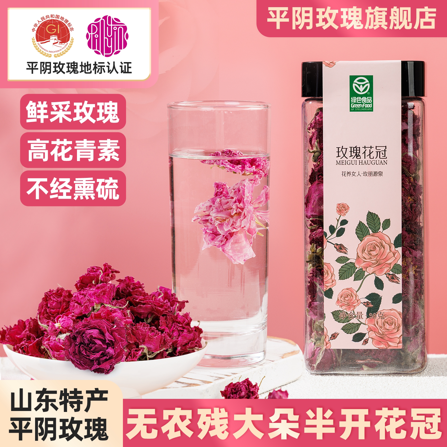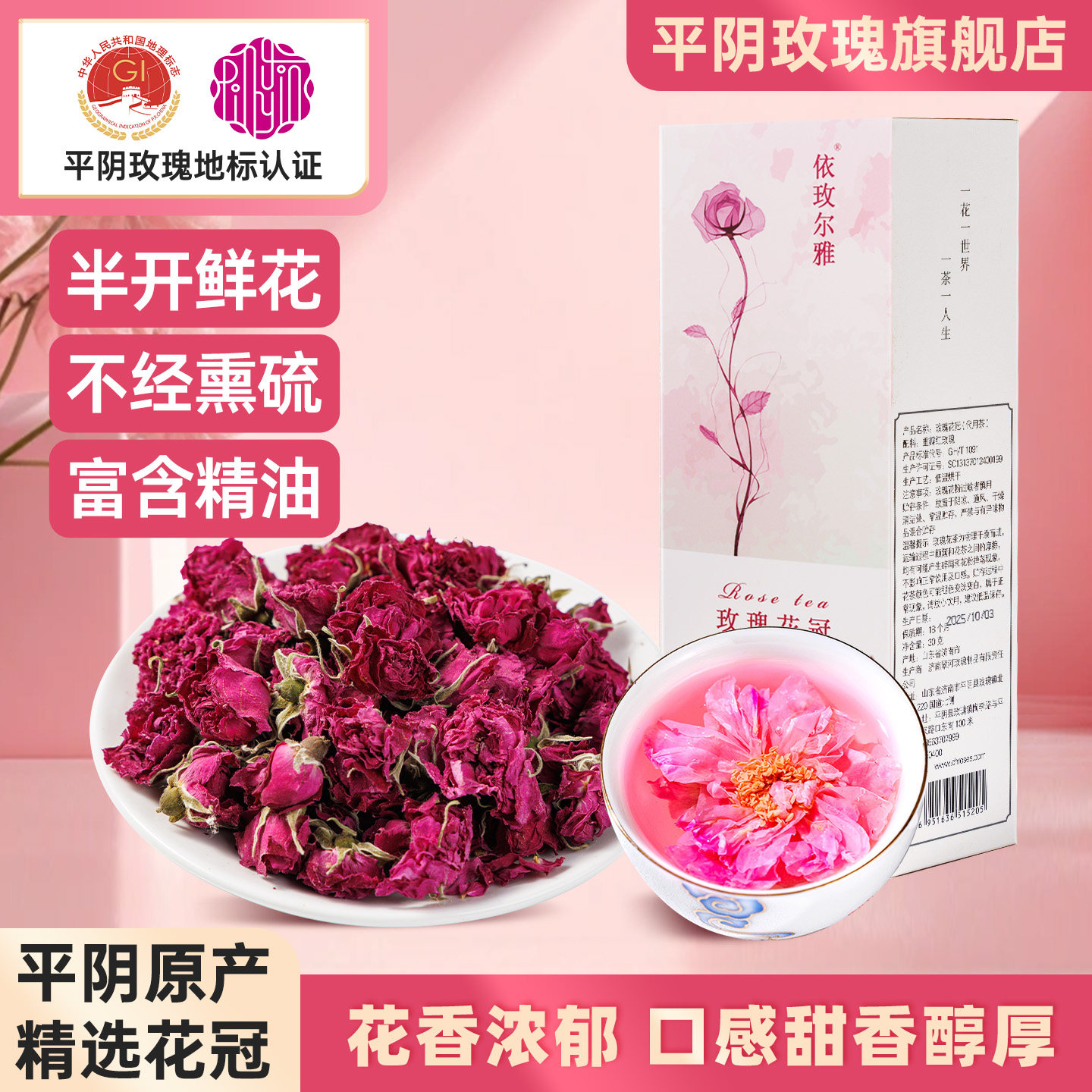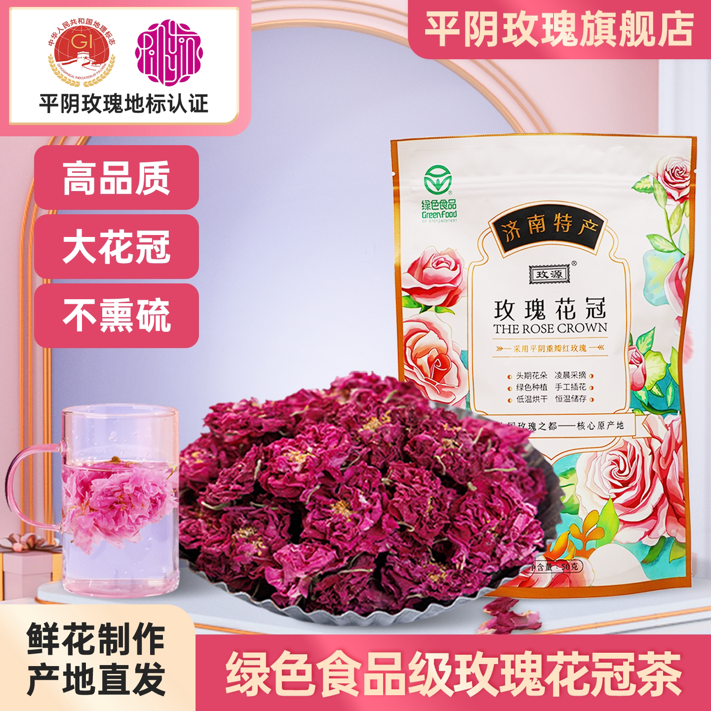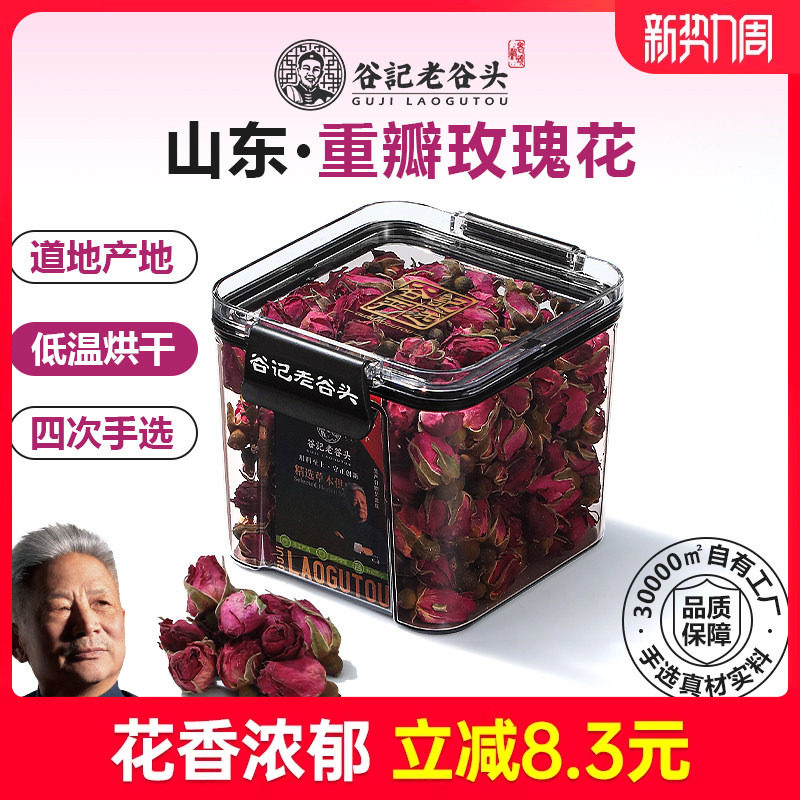 山东平阴玫瑰花冠茶重瓣红玫瑰花茶干花无熏硫泡水官方旗舰店正品