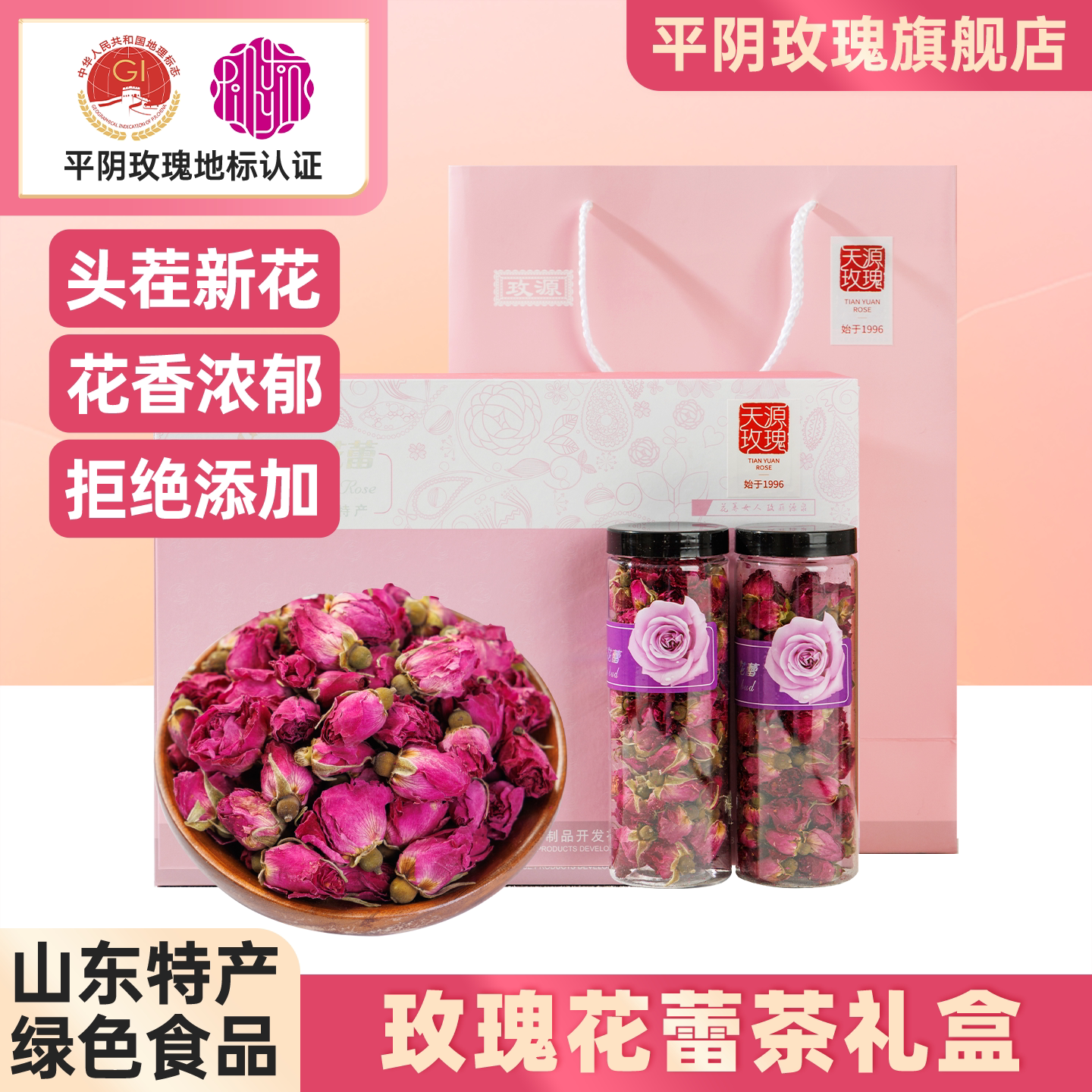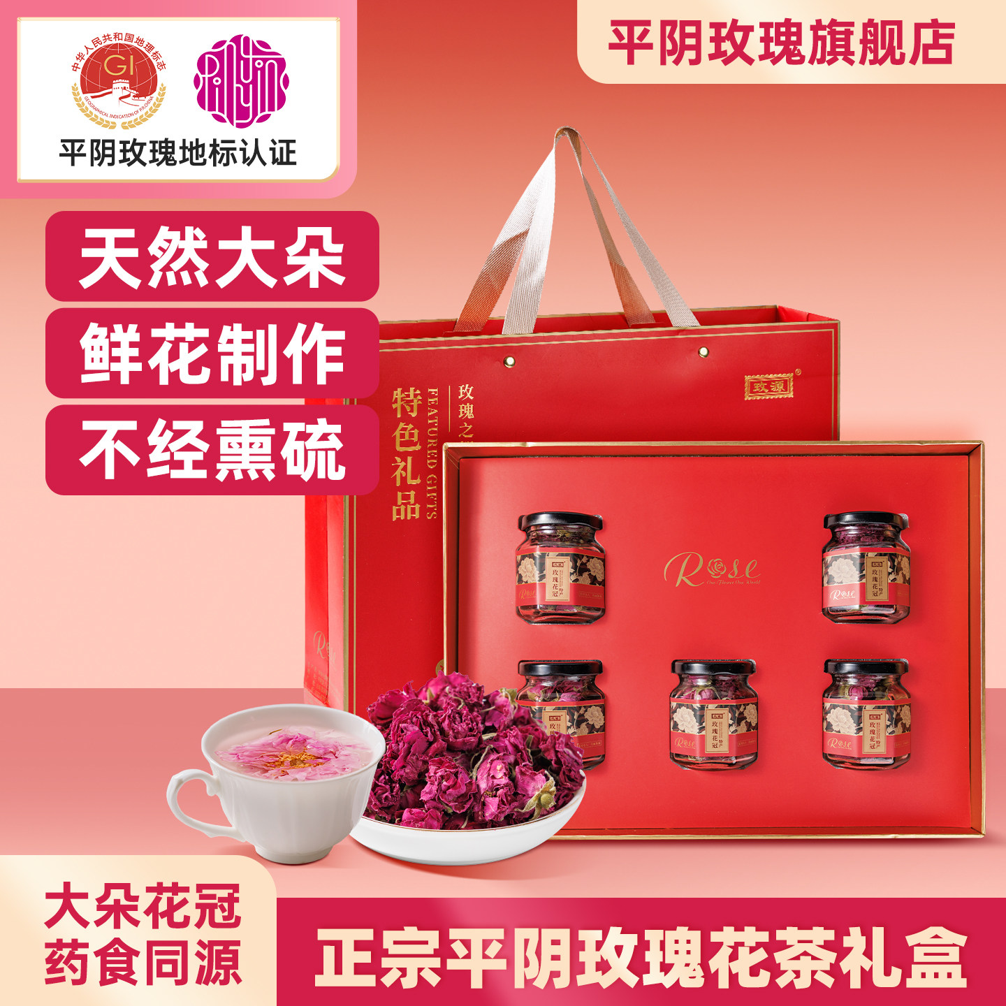 山东平阴玫瑰花茶礼盒装大朵重瓣红玫瑰花冠茶特产正品官方旗舰店