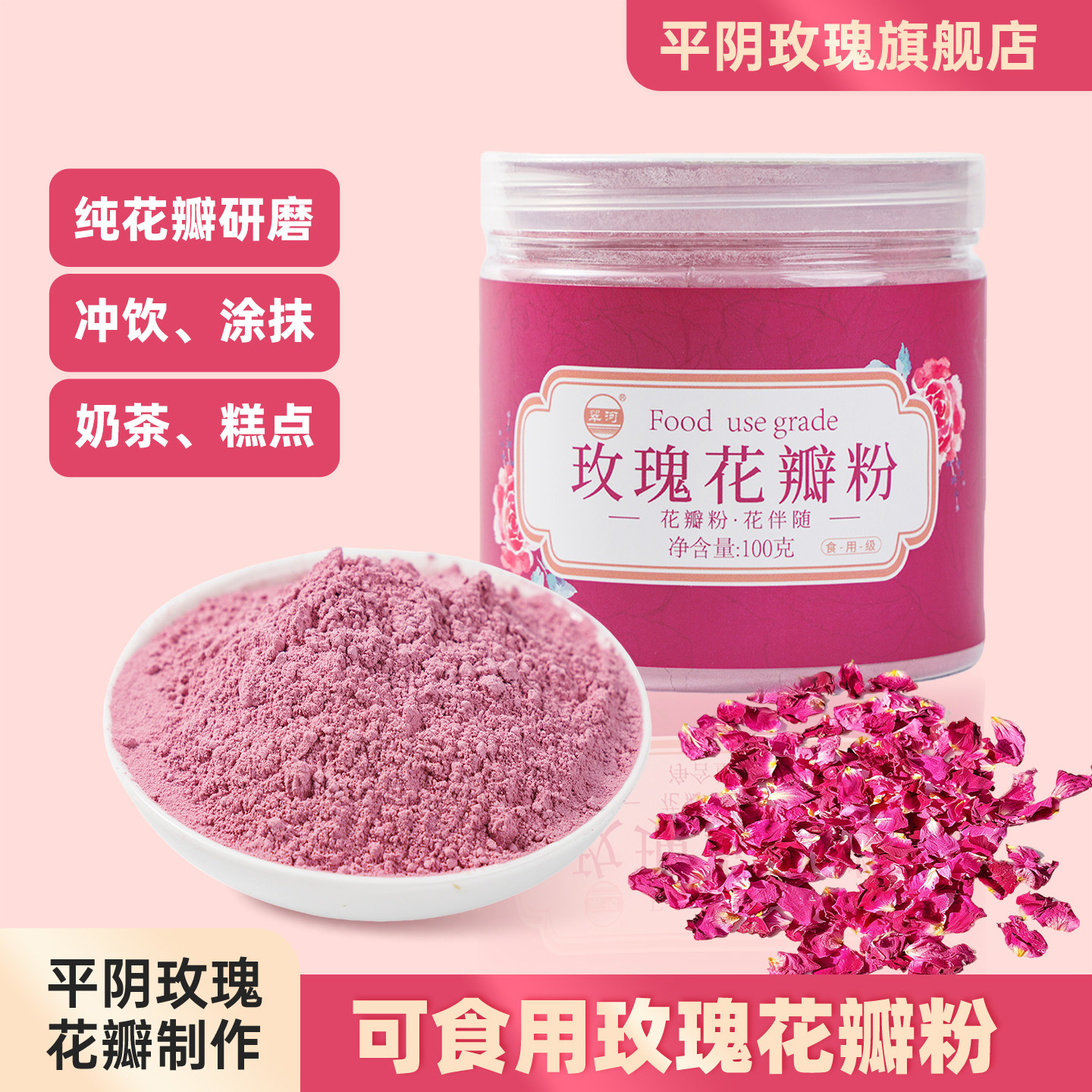 平阴玫瑰花粉食用纯玫瑰花瓣粉末面膜烘焙冲饮奶茶原料官方旗舰店