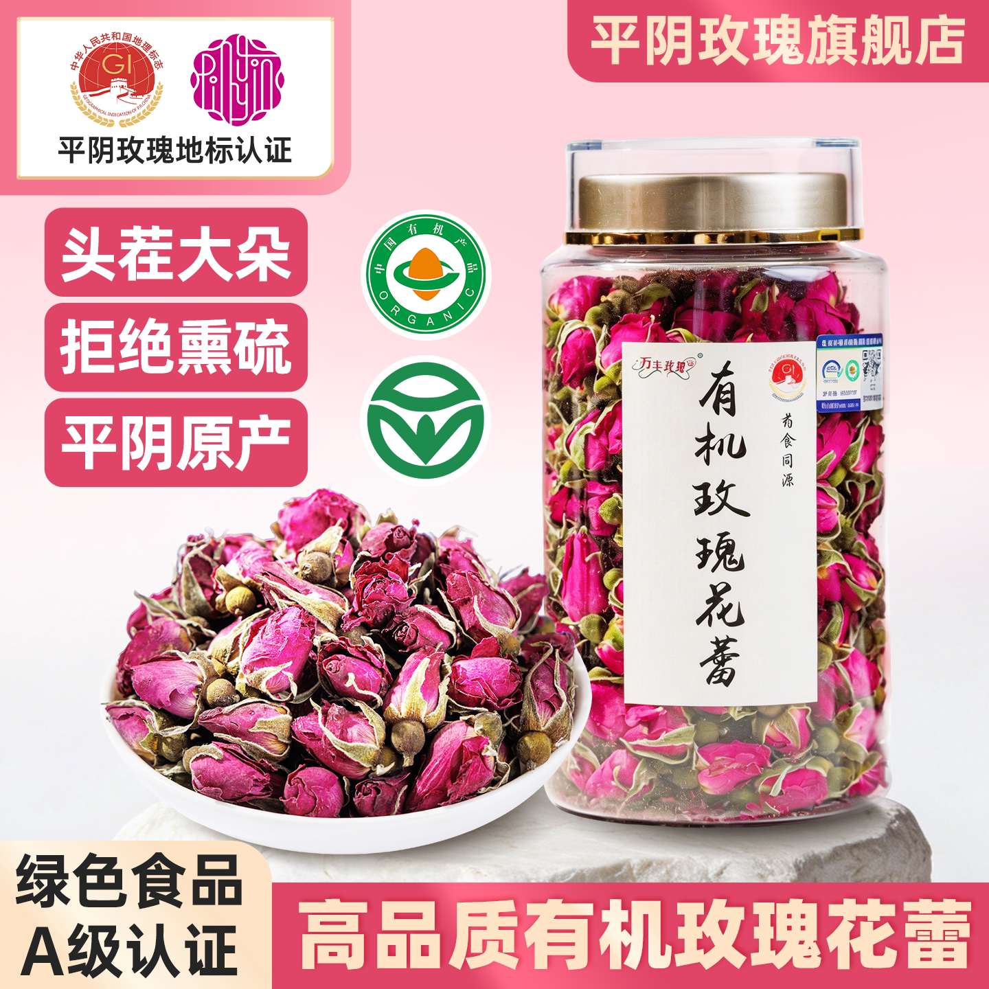 平阴玫瑰花蕾茶有机重瓣红玫瑰花茶干花大朵泡水无熏硫官方旗舰店