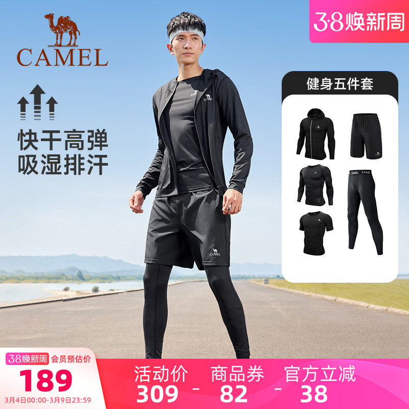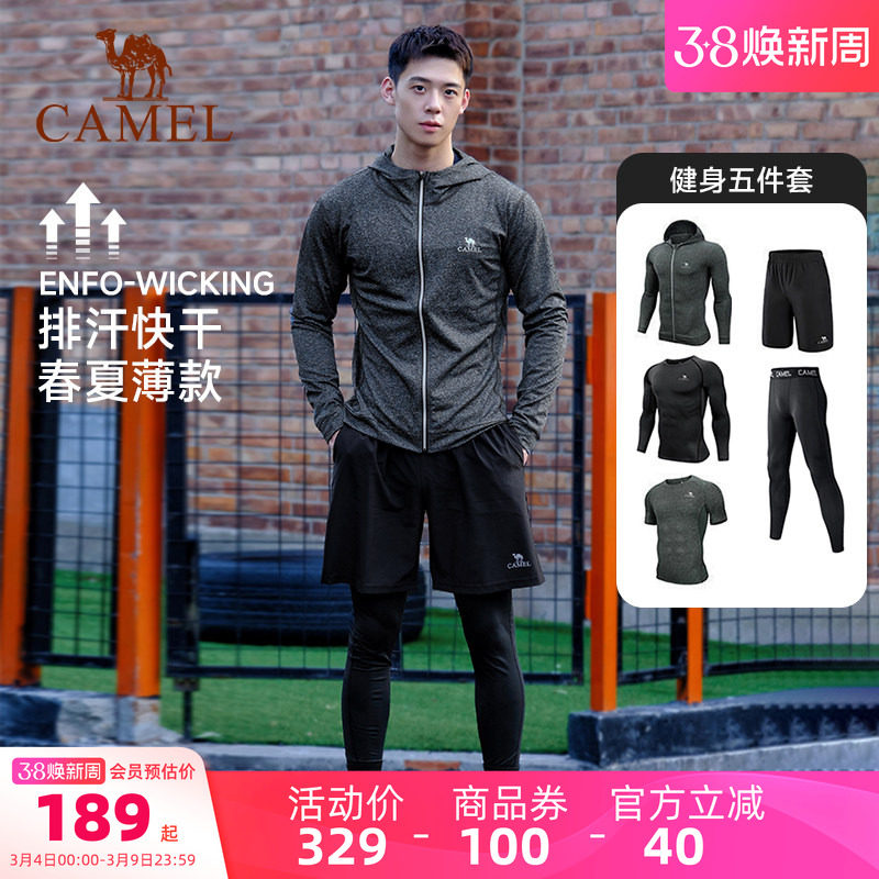 骆驼健身服跑步套装男士2026春夏透气运动套装晨跑训练暴汗紧身衣
