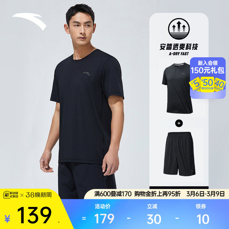 安踏速干套装丨男运动两件套夏季透气T恤短袖短裤跑步体测训练服