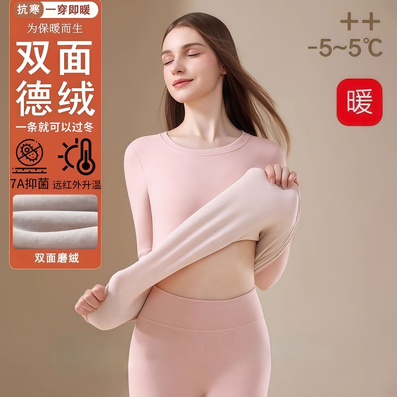 德绒发热秋衣秋裤套装女士秋冬季加绒加厚磨绒内搭打底衫羊绒羊毛