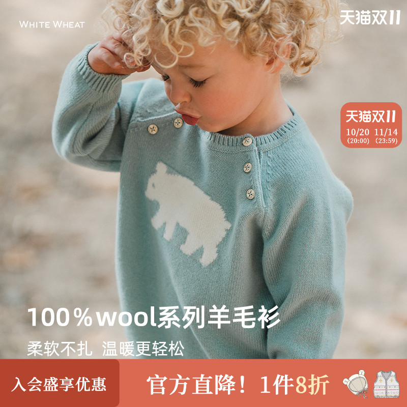 whitewheat男童2025秋冬新款毛衣女宝宝纯羊毛针织衫儿童保暖上衣